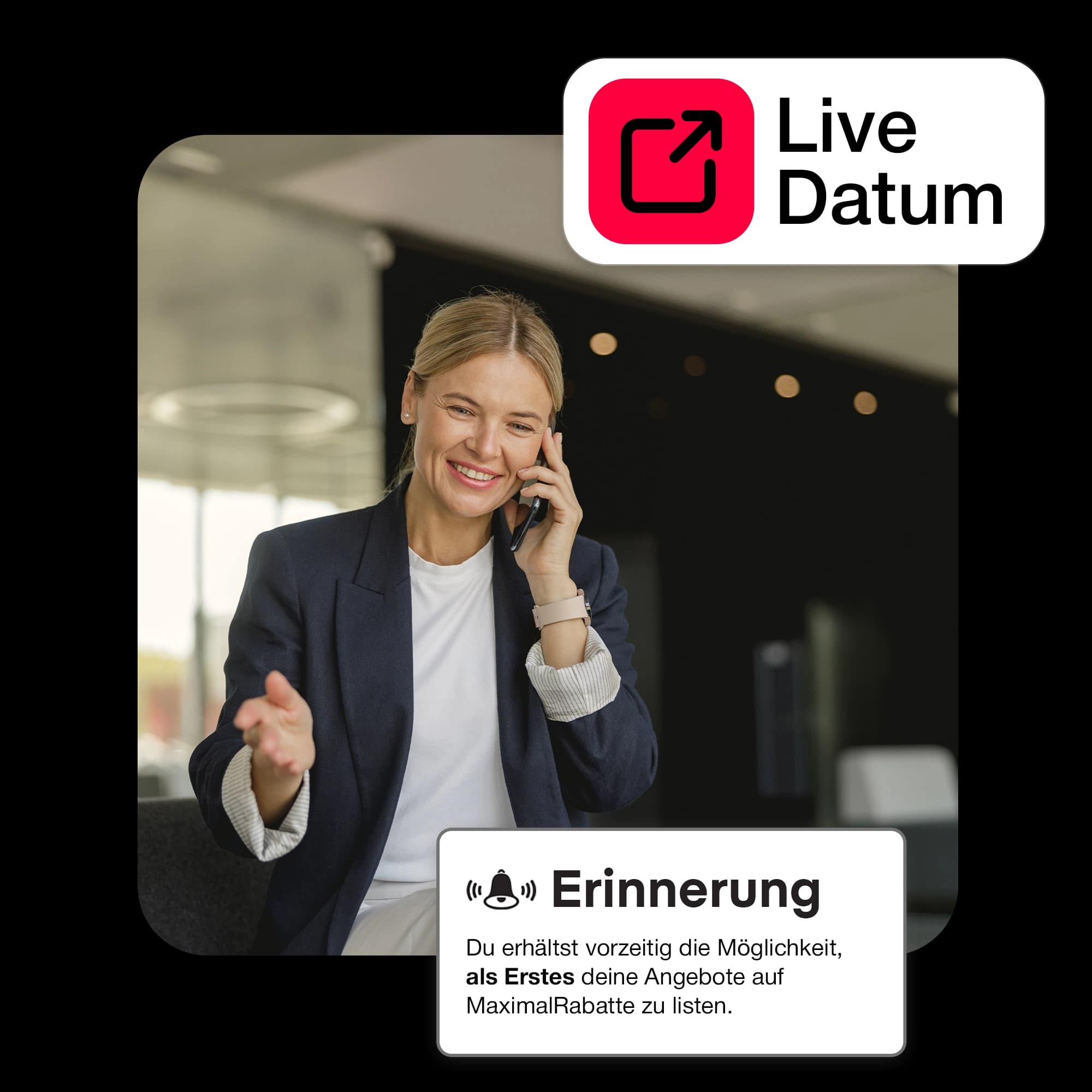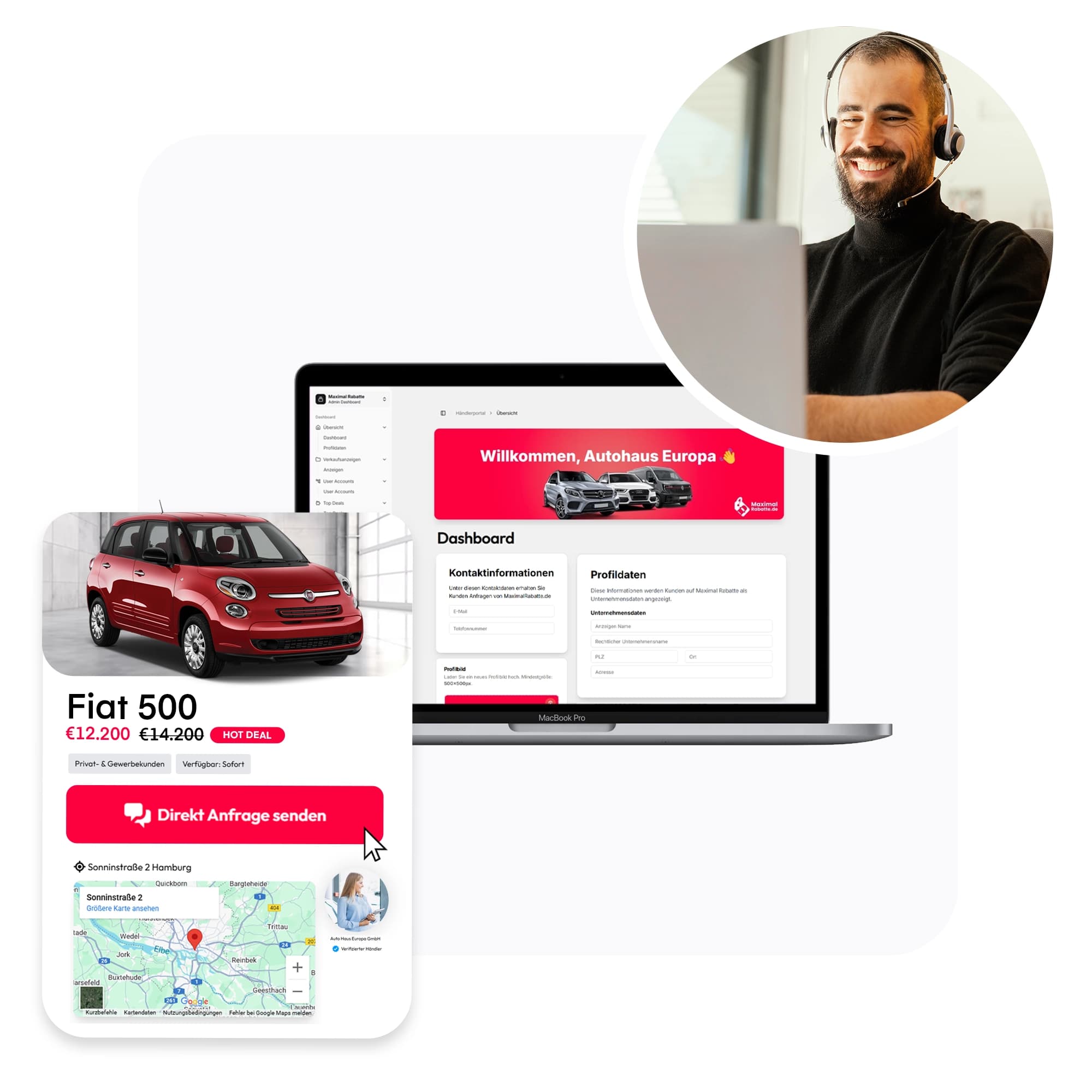 Im Maximalrabatte.de Chat gibt es keine Kontakteinschränkungen, Sie treten Interessenten direkt gegenüber, wie im persönlichen Verkauf, und holen sie gezielt ins Autohaus.