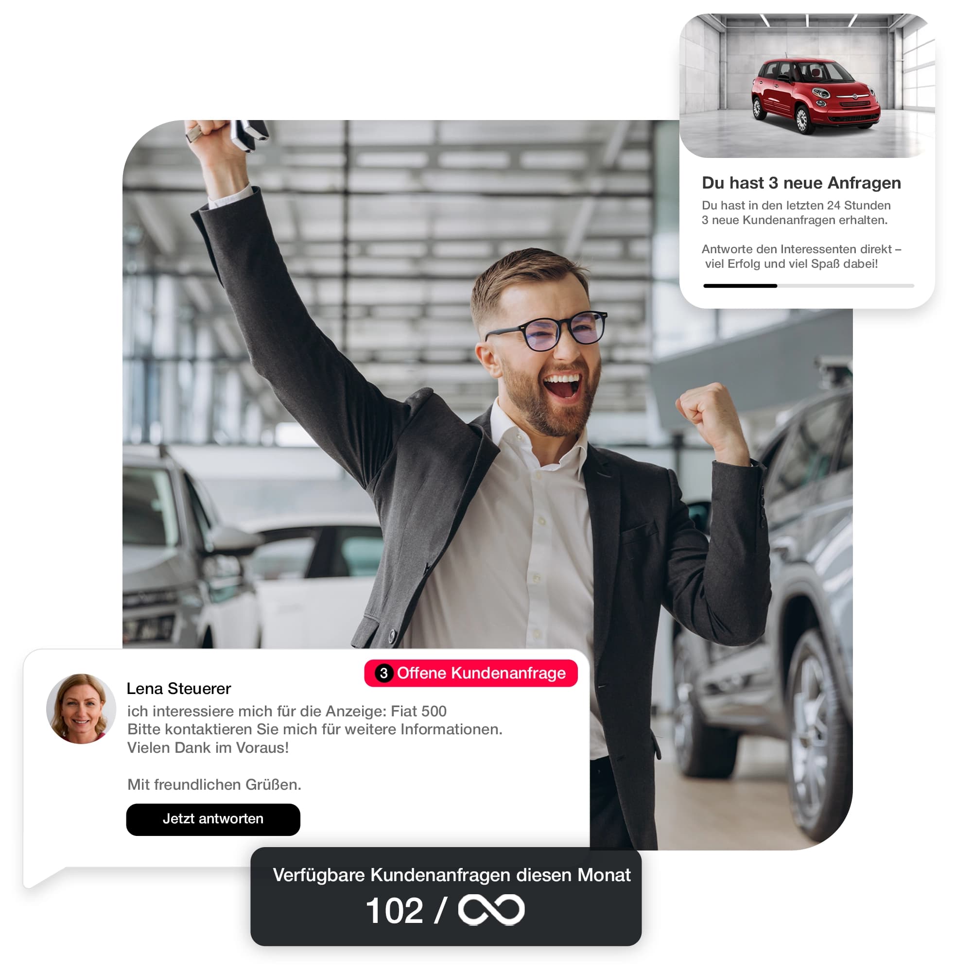 mehr qualifizierter Anfragen, maximale Sichtbarkeit für Top-Angebote und gleichzeitig feste, planbare Kosten, unabhängig davon, wie viele Anfragen oder Verkäufe entstehen.
